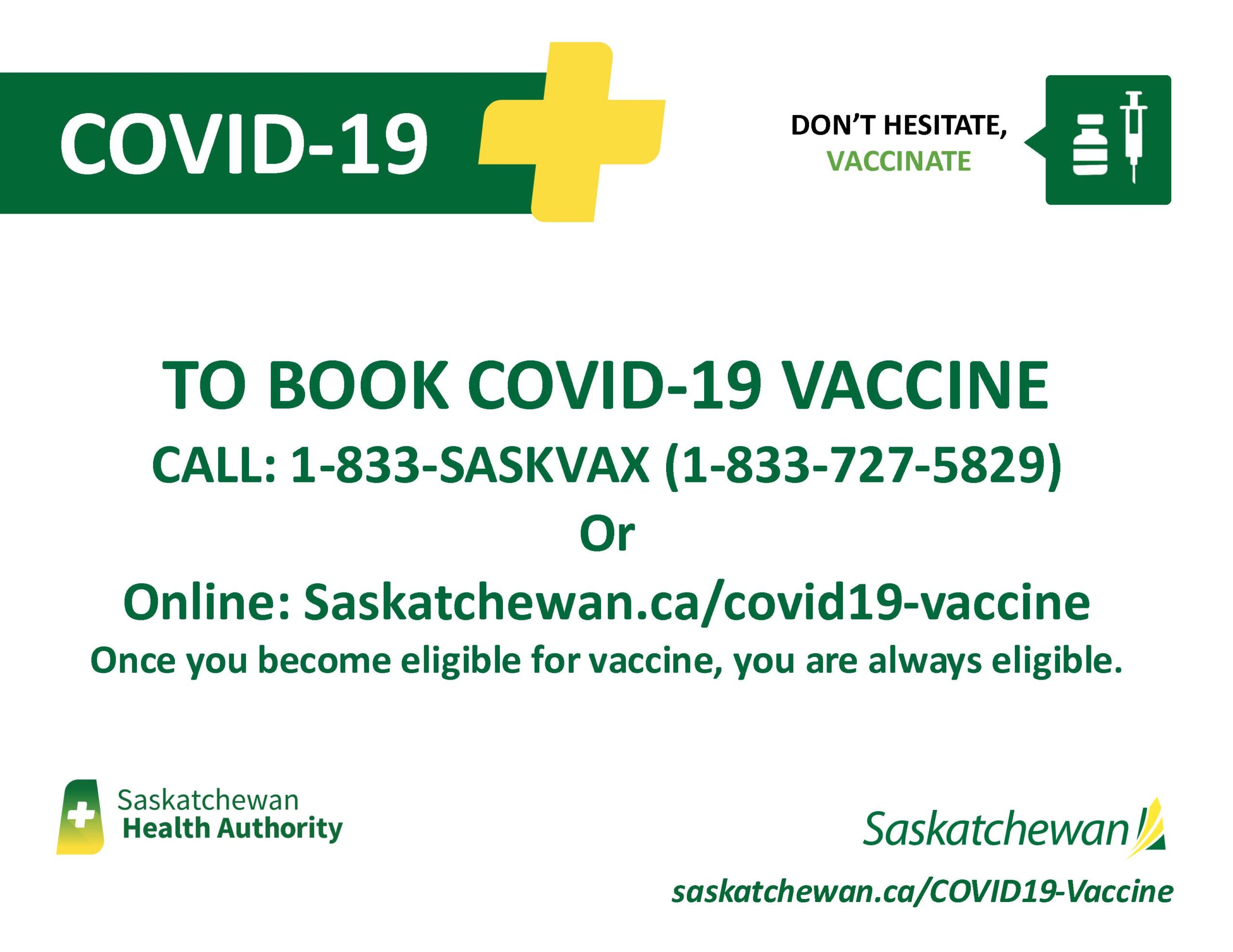 The Saskatchewan Health Authority has announced that COVID-19 vaccine booking eligibility is being expanded again in Saskatchewan. For information on the current public health guidance visit Living with COVID. Information about Saskatchewans COVID-19 vaccine delivery strategy and resources including vaccine appointment booking and eligibility.