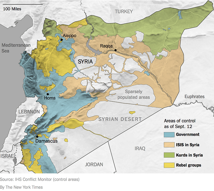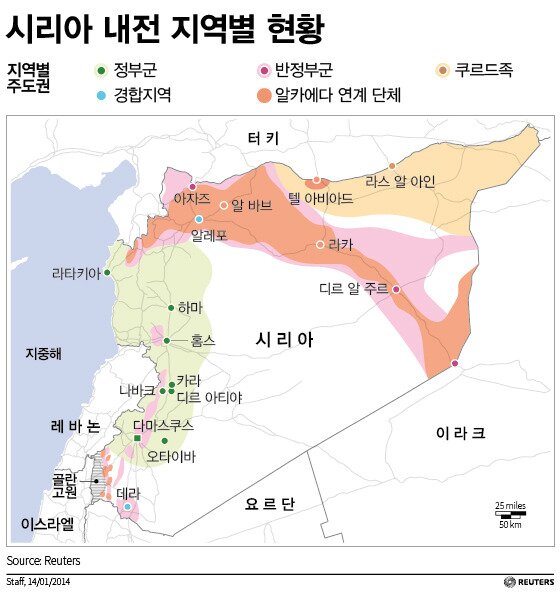 시리아 내전을 둘러싼 세력간의 다툼양상은 다음과 같다. 이라크-시리아 내전 현황 및 IS 준동 영역. 내전의 진행상황과 난민현황 0.